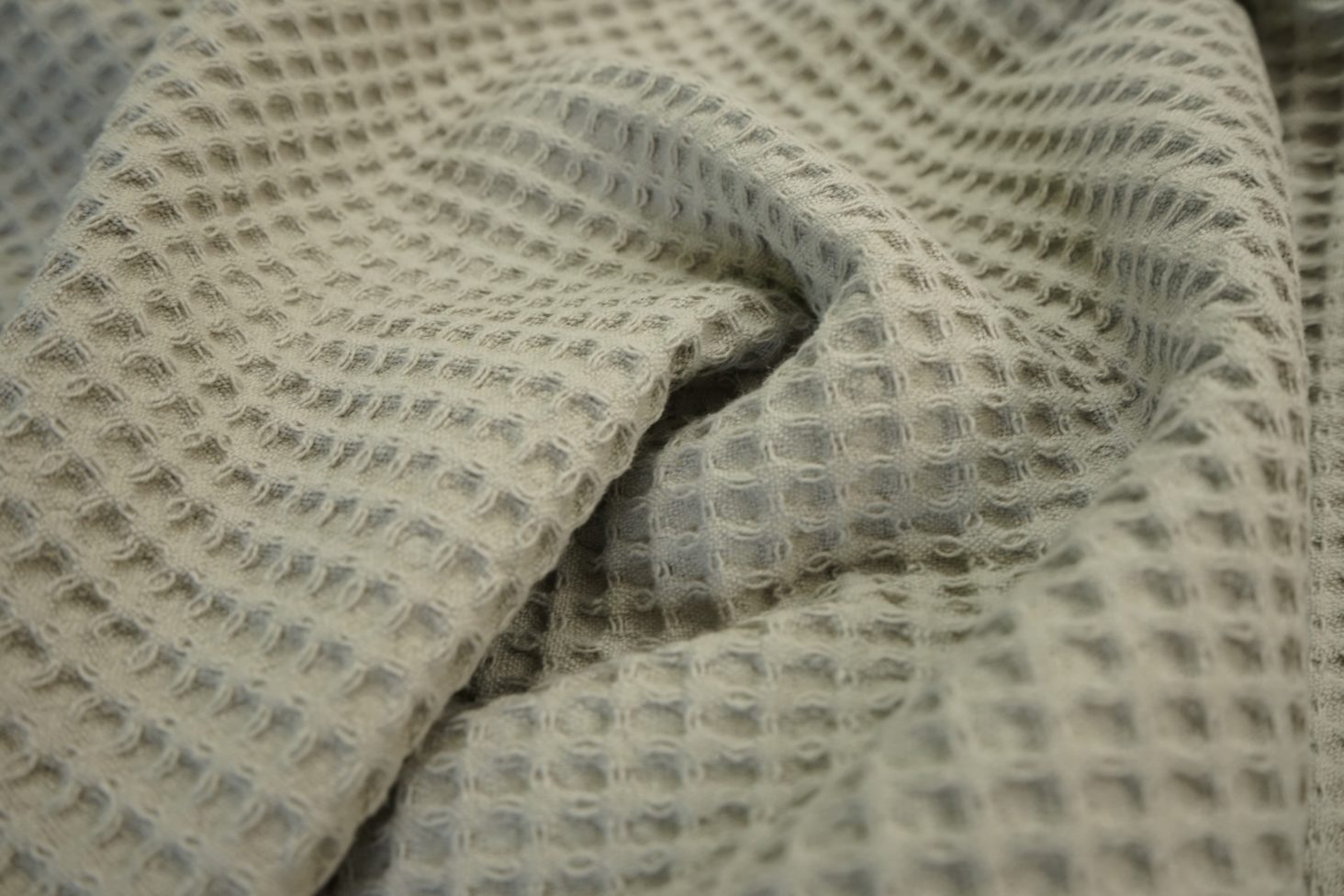 Bawełna wafel w kolorze Silver. Opisywany materiał został wytworzony w pełni z naturalnych włókien. Strukturę bawełny wafel tworzą niewielkie kwadraty, które zapewniają jej niepowtarzalny charakter. Bawełna wafel jest odpornym materiałem, a także łatwym w praniu i czyszczeniu. Dzięki dużej zdolności do oddychania wykonane z niej ubrania są gwarancją wysokiego komfortu. Ubrania bawełniane są polecane także każdemu, kto posiada delikatną skórę oraz cierpi na alergię. Tkanina wafel jest miękka i bardzo przyjemna w chwycie.