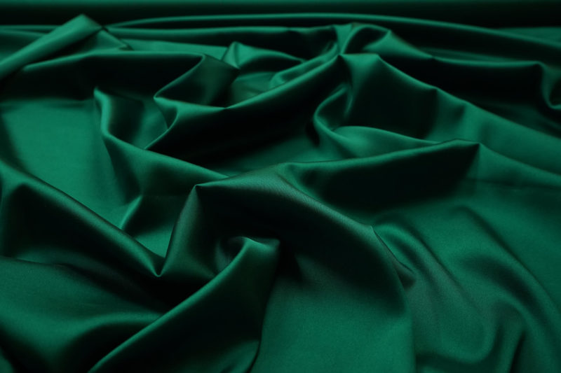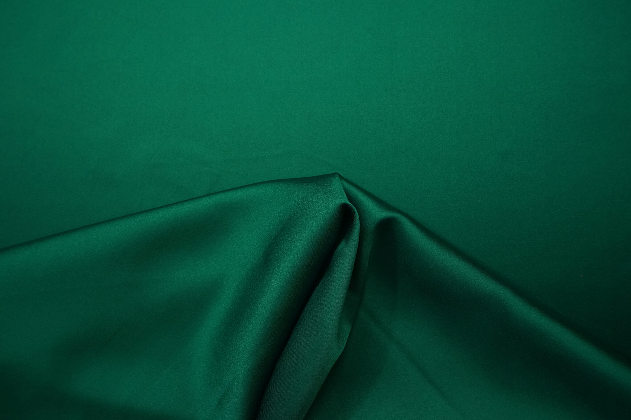 Satyna szmaragdowa z dodatkiem lycry to elegancki, miękki i wyjątkowo plastyczny materiał o delikatnym połysku i głębokim, nasyconym odcieniu zieleni inspirowanym barwą szlachetnego kamienia. Połączenie 96% poliestru i 4% lycry sprawia, że tkanina nie tylko pięknie się układa i odbija światło, ale również lekko się rozciąga, zapewniając większy komfort użytkowania.