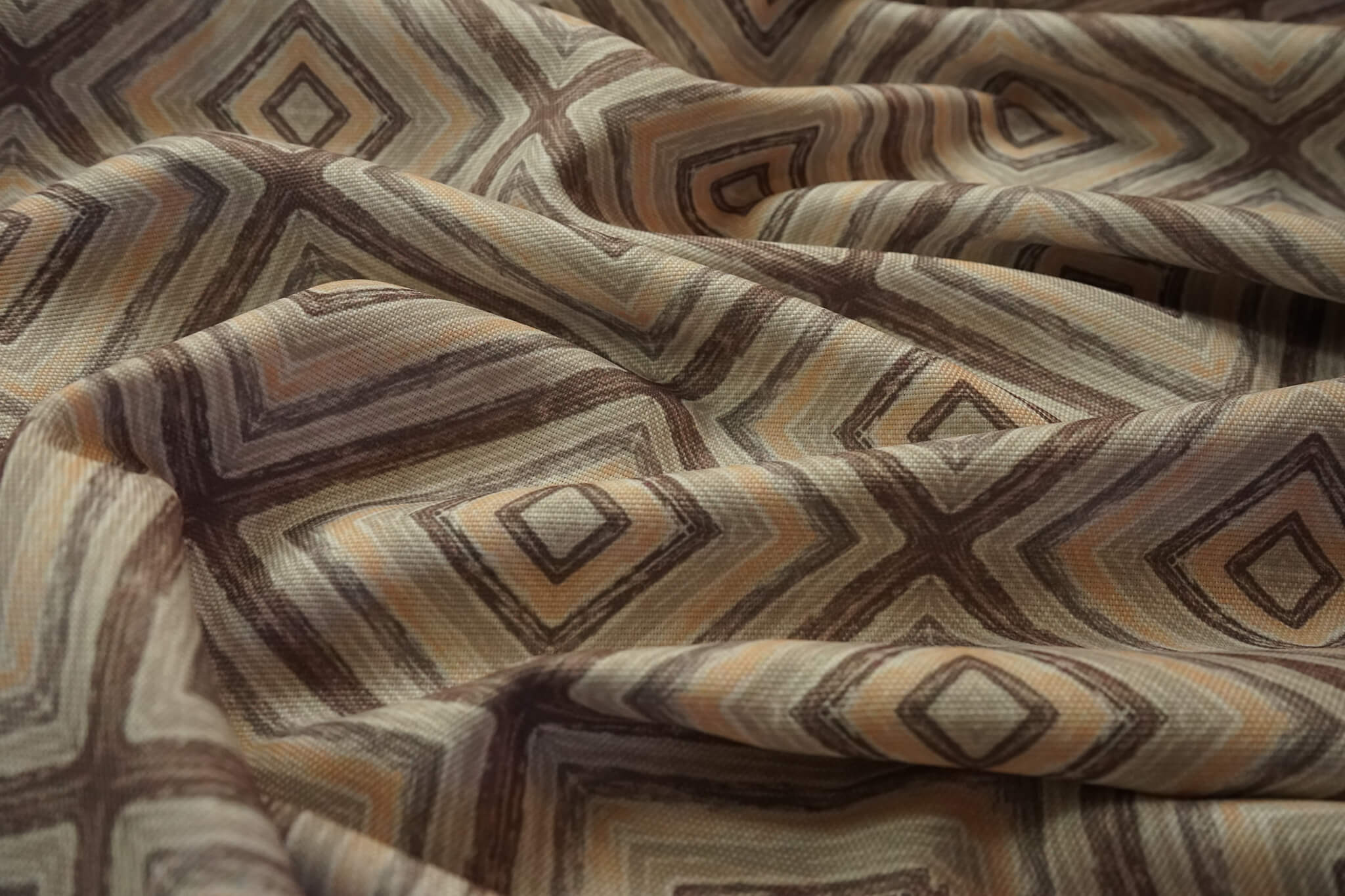Geometryczny wzór, który nigdy nie wychodzi z mody. Ta tkanina z motywem rombów w odcieniach beżu, brązu, oliwki i złamanej żółci to świetna opcja dla tych, którzy lubią klasyczne, ale nie nudne wnętrza. Ma w sobie coś z retro, ale w bardzo eleganckim, stonowanym wydaniu.